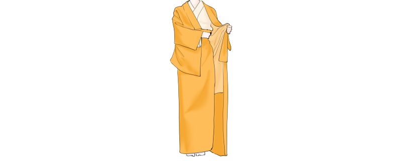 1.在襦袢外面披上和服,拿着襦袢的袖子伸进和服的袖子里面。
